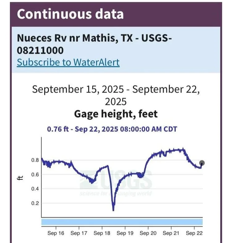 U.S. Geological Survey (USGS): Real-Time Data for Texas – Station 08211000, Nueces River near Mathis, TX. https://waterdata.usgs.gov/tx/nwis/